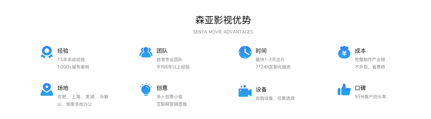 企業(yè)宣傳片、城市宣傳片、招商宣傳片、產(chǎn)品宣傳片、展會(huì)宣傳片、品牌宣傳片、形象宣傳片、短視頻、微電影、紀(jì)錄片、專題片、VR視頻、工作匯報(bào)片、營(yíng)銷片、申報(bào)片。